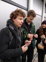 našli jsme kiosek s horkou čokoládou a párkama v rohlíku