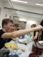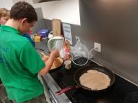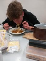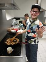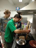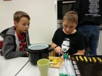 Ondřej míchá těsto a zřejmě něco ochutnává